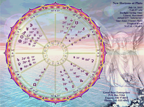 July 19 Update: Over this weekend, Plutocrat-Billionaire Donald Trump declared at a Conservative Iowa Political-Religious rally that Senator John McCain -- who had been tortured and held captive as a Navy pilot by the North Vietnamese for over 5 years -- was not a war hero, This led to a cascading series of denunciations by other presidential candidates and a fire-storm in the media. Meanwhile, a horrific series of real fires on California Interstate 15 wreaked havoc on cars, drivers and passengers, trucks and homes in Southern California while pictures of black, billowing smoke were captured by the Breaking News "extremists" at CNN. The U.S. and Cuba are going to open respective embassies tomorrow 52+ years after The Cuban Missile nearly led to nuclear war engulfing Planet Earth. The "Communist-Dictatorial" regime of the Castro Brothers (Raul now in charge of Cuba for the last few years after Fidel's reign for over 4 decades) maintains its power on that beleaguered island where America still runs the infamous Guantanamo Bay detention camp or military prison (116 detainees still there as of June). And from the world of sports, young 21-year-old phenom Jordan Spieth of Texas -- following dramatic professional golf wins at the Masters and U.S. Open during the past 4 months -- is only 1 stroke behind the leaders at the British Open in St. Andrews, Scotland with one round to play. He is born with a Moon-Pluto conjunction in the Pluto-associated sign of Scorpio. More to come... July 29 Update: Pictures from the New Horizon continue to astound -- revealing the flow of methane, nitrogen and carbon monoxide ices on Pluto's surface, reinforcing the realization that this planet 3 billion miles away from Earth and the Sun has relatively "youthful" geological activity on its surface. Over the last week or so, since the previous update, a 59-year-old white drifter, with a past of violent and outrageous behavior, shot and killed two women and injured around 8 others at a movie theater in Lafayette, LA. He killed himself at the theater as the police quickly arrived. At least two massive suicide bombings near Baghdad -- just before and after the Pluto flyby -- killed dozens of people and injured dozens more. The New Moon that occurred one day after the Pluto flyby revealed the highly explosive and discordant sky configuration of Mars rising and Pluto setting in that locality.